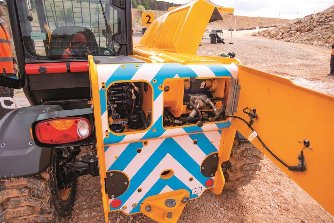 Redzamība no vadītāja sēdekļa ir ļoti laba, jo pārejot uz elektrisko piedziņu nav radīti papildu pārsegi, kas apgrūtinātu skatu. Patiešām, ja JCB būtu gribējis, tas būtu varējis samazināt veco dzinēja pārsegu, lai vēl vairāk uzlabotu redzamību, jo akumulators un elektromotora vadības ierīce ir mazāki nekā dīzeļdzinējs un transmisija, ko tie aizstāj.
