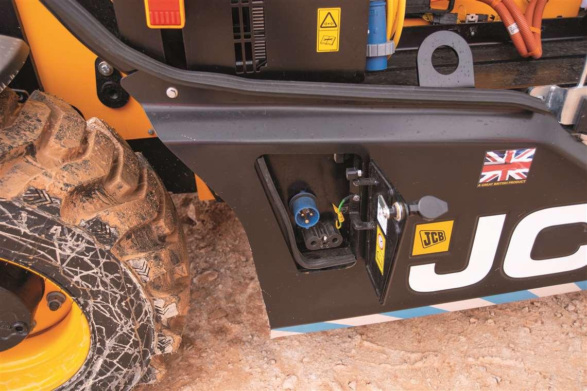 Mašīna ir aprīkota ar iebūvētu 3 kW lādētāju, kas spēj pilnībā uzlādēt akumulatoru 8 stundās, izmantojot sadzīvē izmantojamu 230/240 V elektroapgādi. JCB neizmanto speciālus uzlādes spraudņus un kabeļus, ko lieto elektromobiļiem, jo nav daudz būvlaukumu ar automašīnu uzlādes punktiem. Tā vietā jūs atradīsiet tipisku zilu savienotāju mazajā uzlādes pieslēgvietā labā aizmugurējā riteņa priekšā.